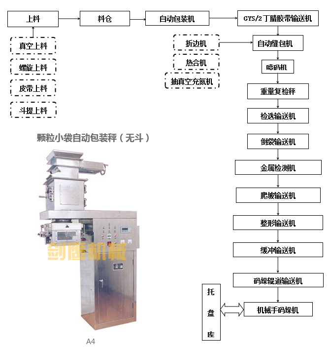 適用范圍 尿素、復(fù)肥、味精、塑料粒子、聚丙烯、礦砂、食品添加劑等顆粒物料的包裝生產(chǎn)線